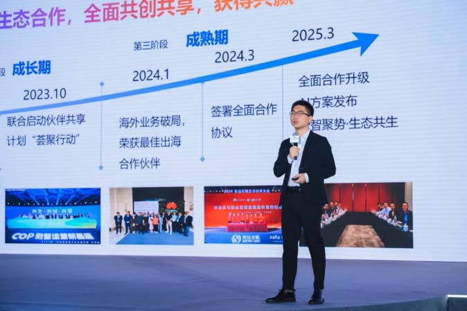 会上,华为云计算中国区生态发展部部长发表了《根治算力、智联未来——华为云和致远共筑智能新生态》的主题演讲,阐述了双方基于AI、算力等方向的全面合作。