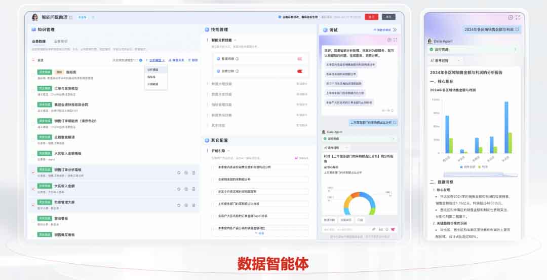 DataAgent是专注于数据工作的智能体,继承了AI Agent 的“智能骨架”,如:自然语言理解、任务规划、工具调用;又融合了数据工程的“专业肌肉”,具备SQL编写、数据清洗、图表生成、洞察分析等操作能力,为用户提供涵盖数据平台技能 、数据模型和领域知识问答的全面能力。