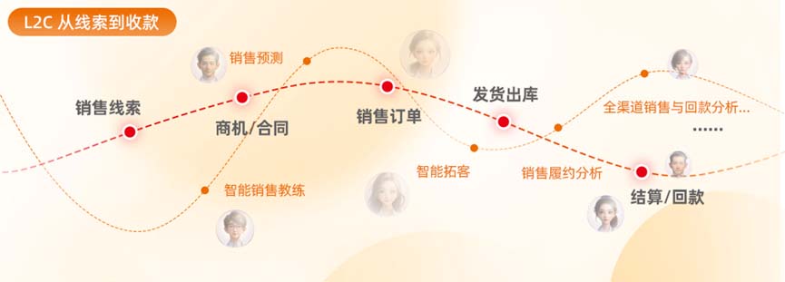 L2C线索到收款:通过从线索、商机、合同、订单履约到收入闭环管理,将碎片化环节整合为连贯价值链,提升销售转化率、提升客户体验、驱动营收增长。以赋能企业销售团队,协同内外勤部门,外部赋能渠道伙伴和客户自助为目标,提供从简单销售模式到多板块、多销售模式的集团企业直分销融合一站式解决方案。