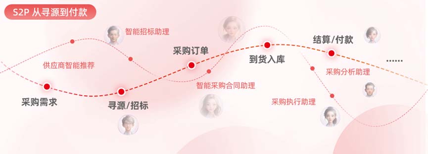 S2P从寻源到付款:提供从寻源、合同到付款的端到端全流程管理,针对企业采购全品类,提供战略寻源、供应链协同和智能化采购能力。旨在实现企业采购业务全过程可视,通过全面采购支出分析和采购品类策略,运用智能化技术辅助采购业务与过程决策,实现采购降本并保障采购绩效达成,持续提升企业供应链竞争力。