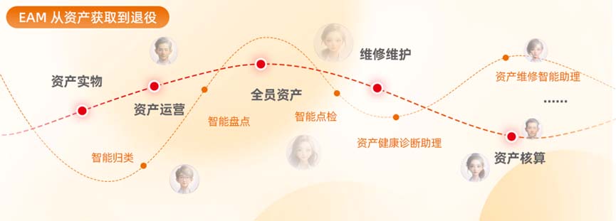 EAM从资产获取到退役:以资产为核心,实现了从期初资产获取到最终资产报废处置的全生命周期精益化管理,覆盖了资产实物管理、资产运营、全员资产、设备与维修维护以及报废与处置五大业务场景,破解传统资产管理的数据分散、标准不规范、作业难监管、设备可靠性低,数据决策难的痛点。