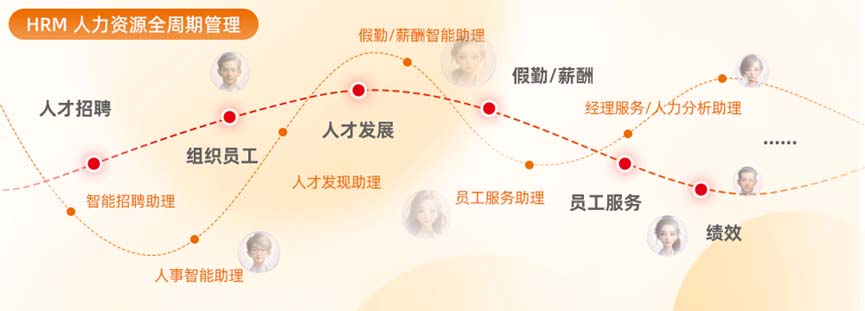 HRM人力资源全周期管理:提供人力资源的寻访与招募、资源配置与人员发展、雇佣与组织发展、目标与绩效管理、人才发展与劳动力规划的全生命周期管理,通过数据智能满足组织决策的需要,赋能员工、激活组织。