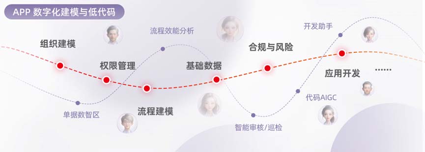 APP数字化建模与低代码:涵盖组织建模、流程建模、业务对象建模、权限/基础数据管理等,提供企业内多维组织模型、流程分级管控、灵动工作台,以及多语言、多时区、多多币种/汇率等全球化基础服务,以可复用、可扩展、可运营的服务能力,助力企业快速的业务创新。