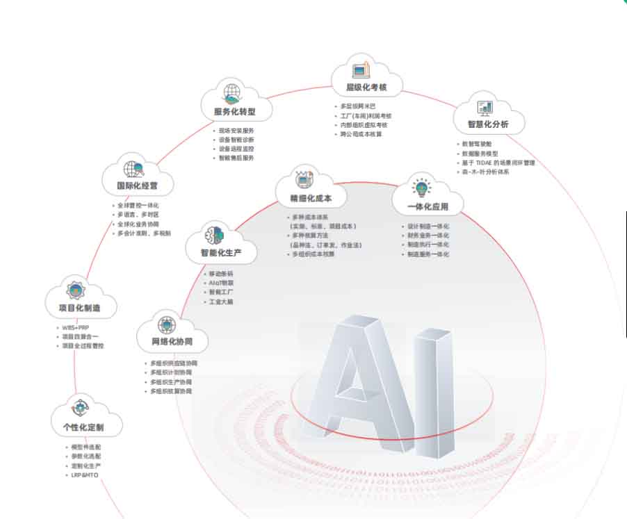 制造业的复杂性,在于其全流程协同的刚性要求。用友U9 cloud全面覆盖制造企业十大核心应用场景——网络化协同、智能化生产、精细化成本、一体化应用、个性化定制、项目化制造、国际化经营、层级化考核、服务化转型和数智化分析;此外,基于通用与自研模型,支持覆盖多领域的智能应用;行业套件精准破解装备制造、汽配、IC芯片等行业难题;同时提供订阅、本地部署、许可买断等灵活部署模式,辅以轻咨询与客户成功体系,成为众多制造企业数智化转型的信赖之选。