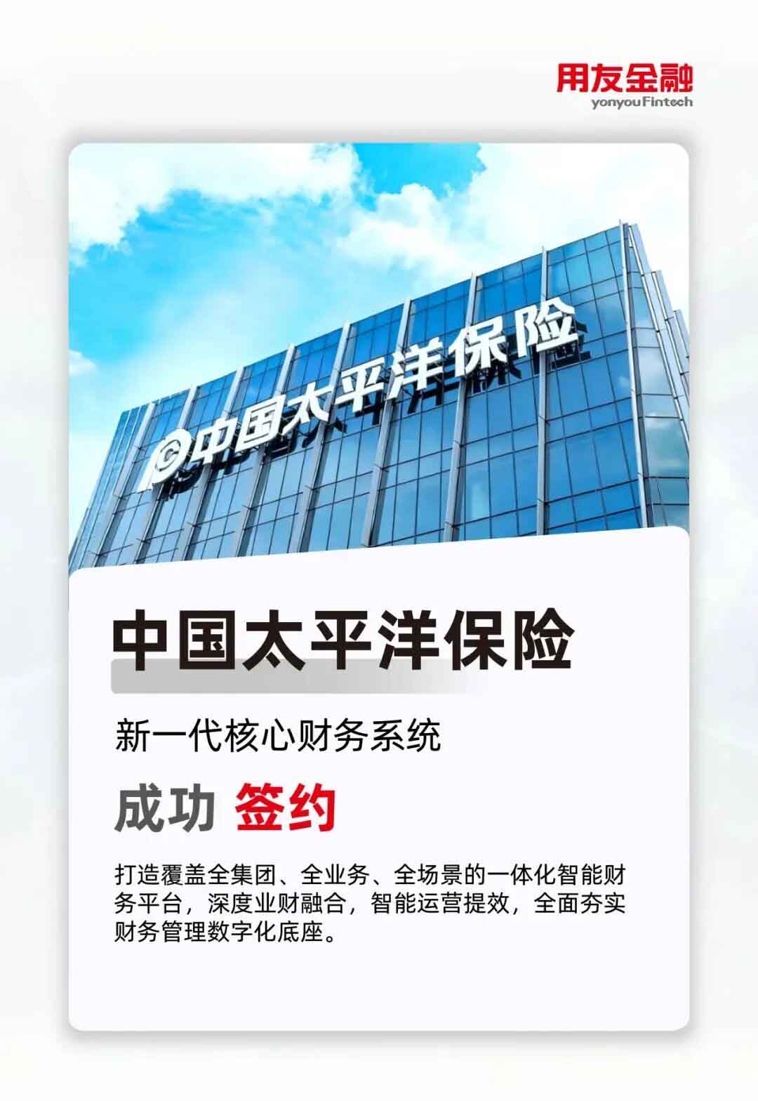 近日,中国太平洋保险(集团)股份有限公司(以下简称“中国太平洋保险”)与用友金融信息技术股份有限公司正式签署“核心财务系统软件采购项目”合作协议。双方将携手打造新一代一体化智能财务平台,全面夯实财务管理数字化底座,为中国太平洋保险高质量发展战略提供坚实支撑。